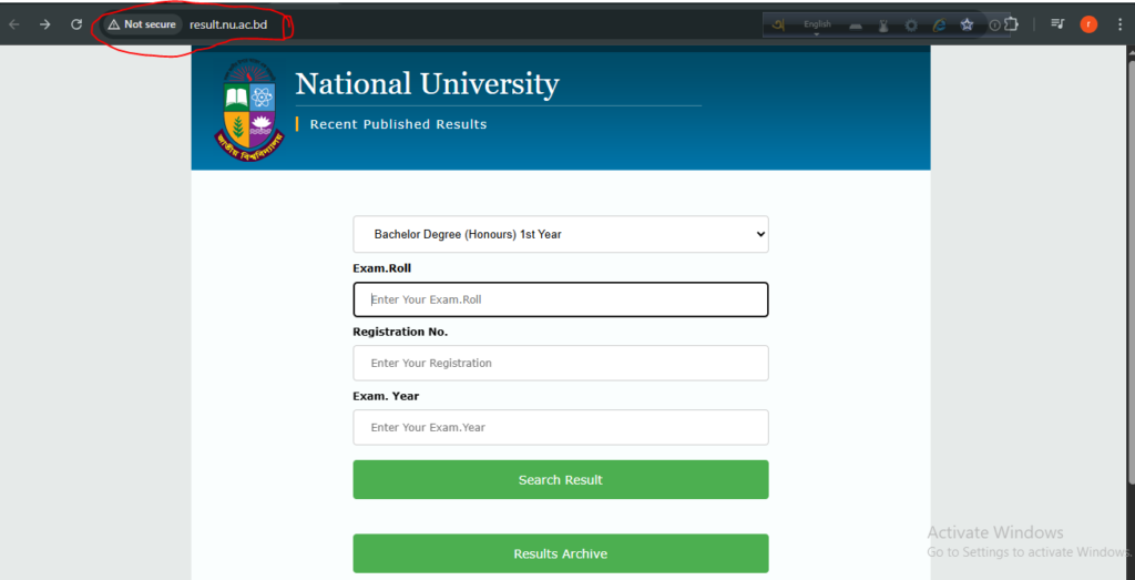 অনার্স ১ম বর্ষের রেজাল্ট দেখার লিংক
