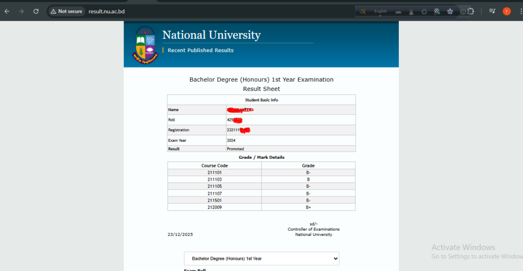 অনার্স ১ম বর্ষের রেজাল্ট দেখার নিয়ম ২০২৫