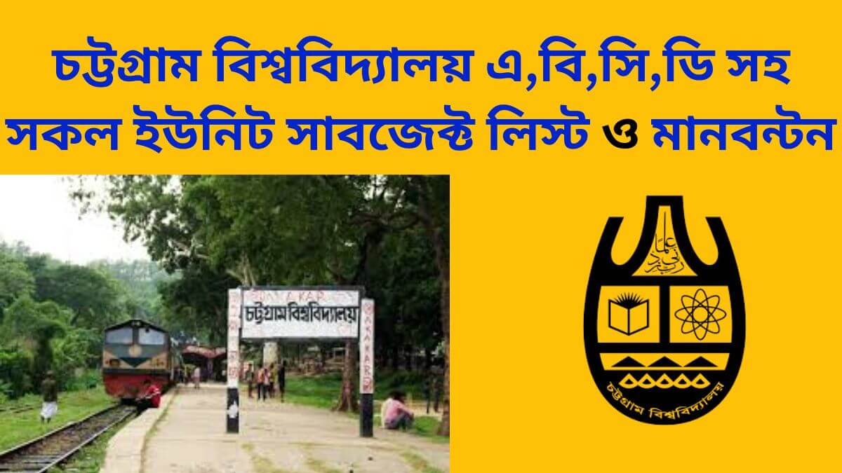 চট্টগ্রাম বিশ্ববিদ্যালয় এ,বি,সি,ডি সহ সকল ইউনিট সাবজেক্ট লিস্ট ও মানবন্টন